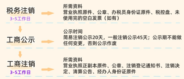 2、核心步驟:成立清算組,工商備案→登報(bào)公示45天→稅務(wù)清繳→工商注銷;總耗時(shí):2~6個(gè)月(如有稅務(wù)稽查更久)。